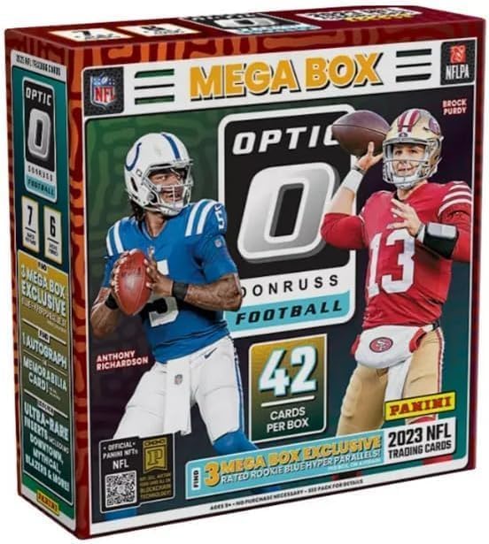 Details: 2023 Panini Donruss Optic Football Mega Box includes 7 packs with 6 Cards each! Look For Downtown Inserts! 6 Cards per Pack 7 Packs per Box 42 Total Cards Per Box All boxes come Factory Sealed!