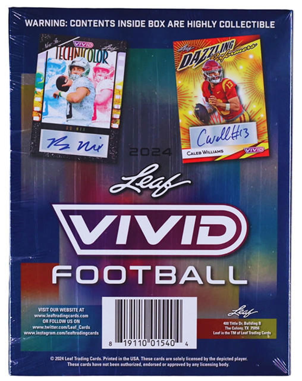 2024 Leaf Vivid Football Hobby Trading Card Box 5 Autographs